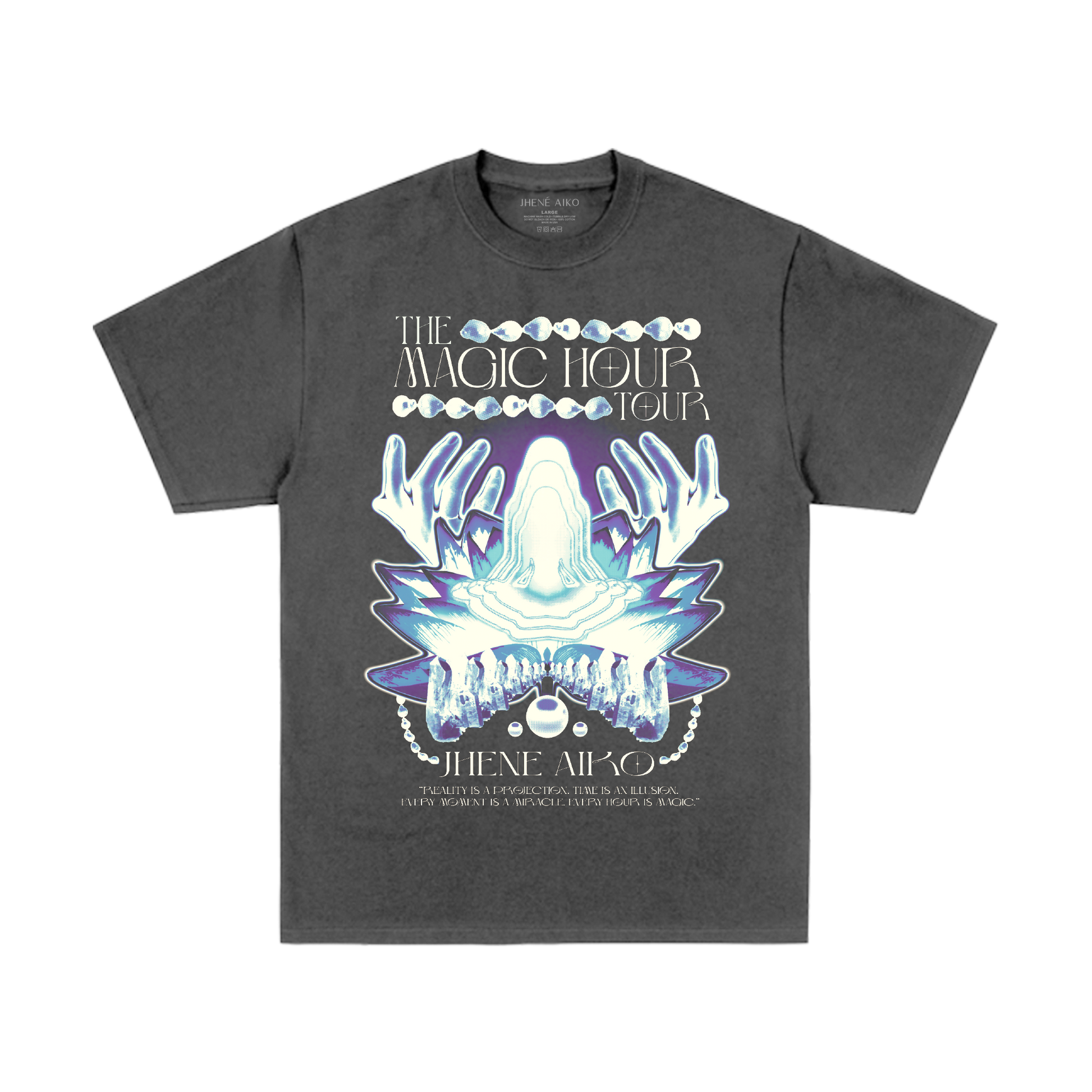 Black tee featuring Jhene Aiko's The Magic Hour Tour graphic on the front.